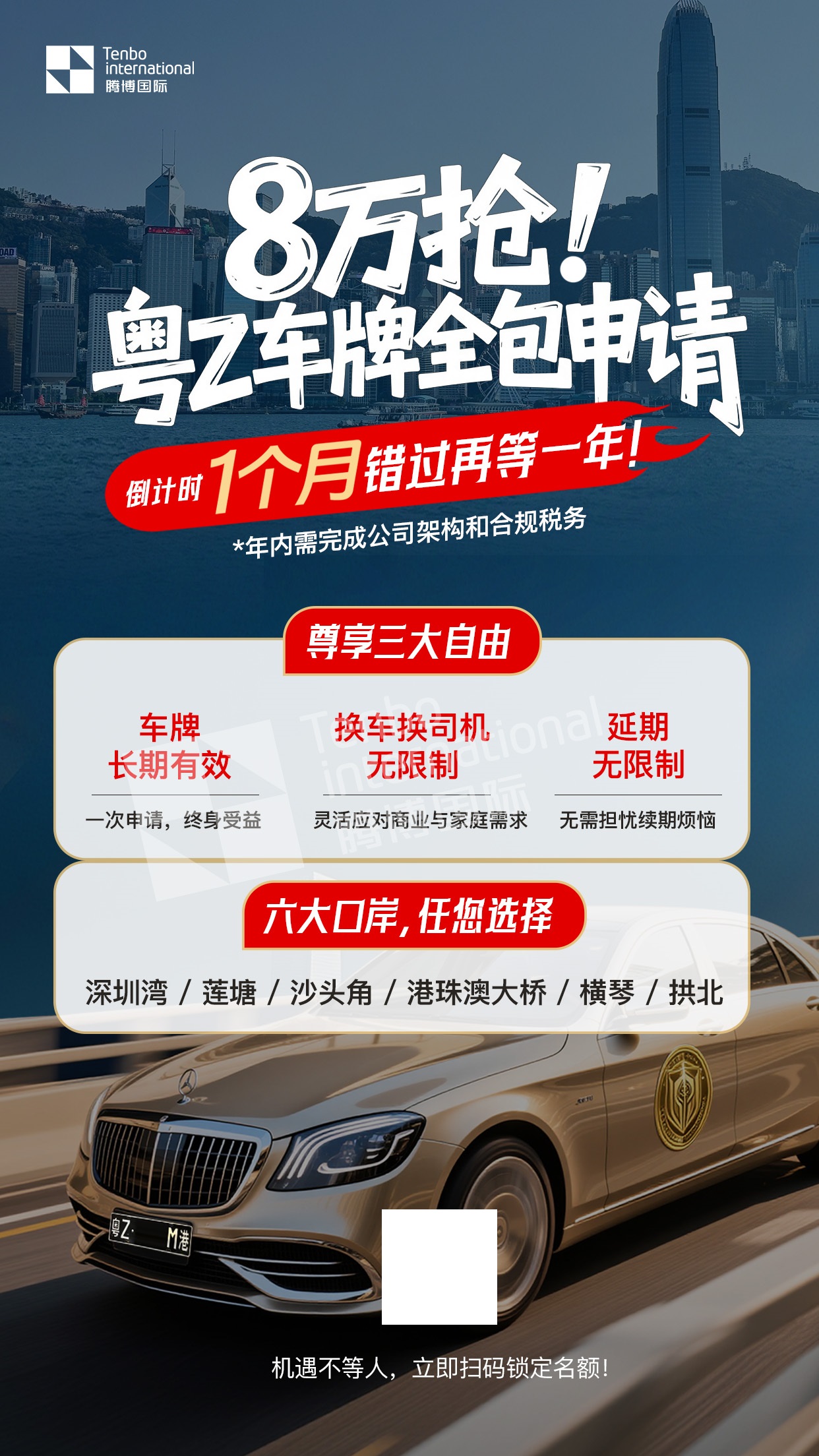 在深圳跨境布局与深港联动的大背景下,跨境通行与高端人才流动成为新趋势。腾博智慧提供粤港澳车牌(FV/FU/粤Z)服务,助力私募基金高管、企业家及跨境并购团队实现高频跨境商务需求。结合香港身份、港车北上与深圳并购基金,打造深港跨境管理组合,开启全球商务新篇章。